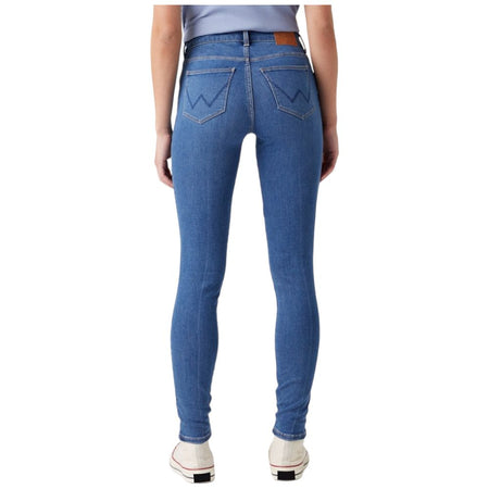 Wrangler jeans skinny da donna blu medio Day dream W28KAEX11. Jeans 5 tasche, chiusura con zip e bottone, gamba affusolata, vestibilità skinny. Composizione: 62% Cotone, 29% Elastan, 7% Elastimultultaneo, 2% Elastan