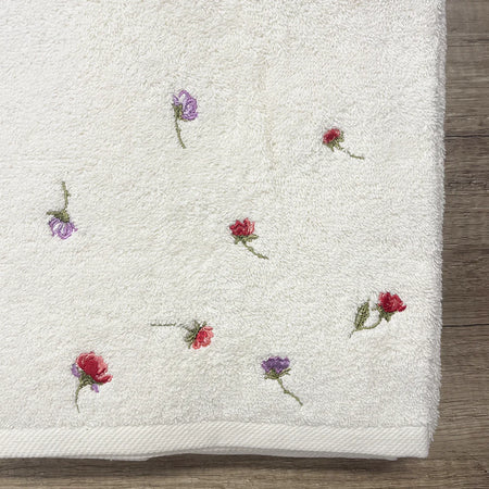 Il Telo Doccia con ricamo,  in spugna di cotone di alta qualità.