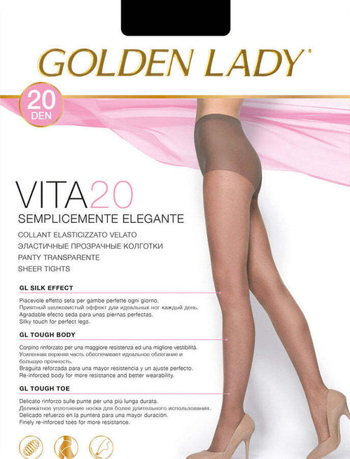 GOLDEN LADY Vita 20 Collant elasticizzato velato effetto seta nero