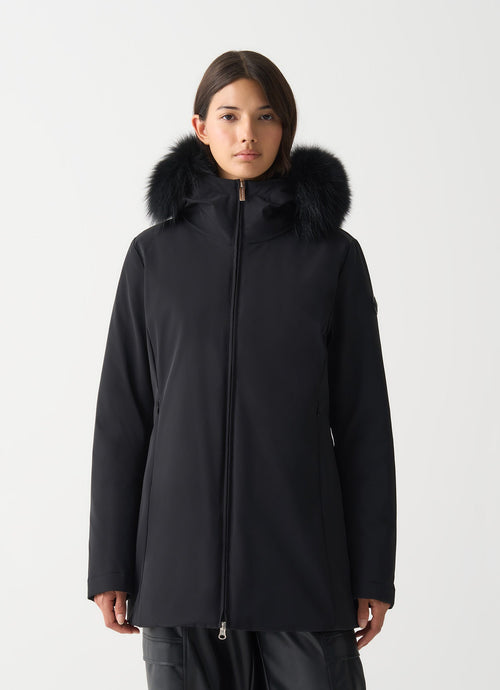 Colmar Piumino donna impermeabile nero con cappuccio e pelliccia sintetica