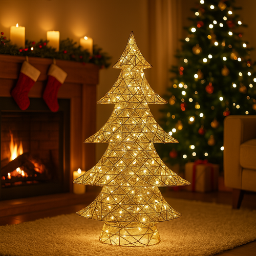 Albero decorativo cono con luci Led champagne per decorazione natalizia
