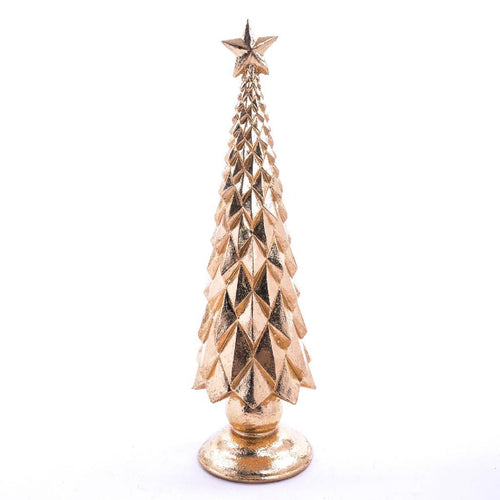 Albero decorativo in resina color oro con luci Led per decorazione natalizie 33 cm