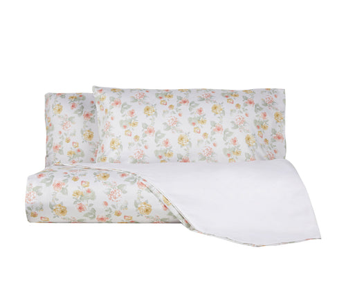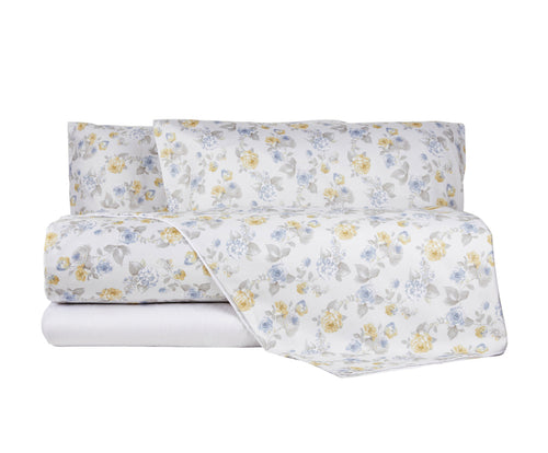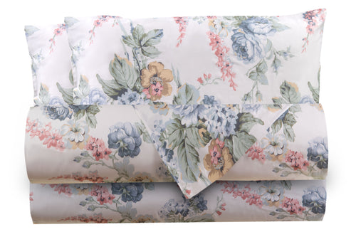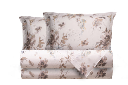 Completo letto lenzuola stampato stampa fantasia in raso di puro di cotone made in Italy MATRIMONIALE BOUQUET