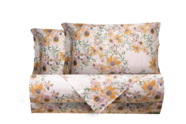 Completo letto lenzuola stampato stampa fantasia in raso di puro di cotone made in Italy MATRIMONIALE FIORI DIPINTI
