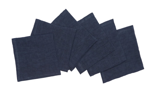 Set di 6 tovaglioli da tavola 45 X 45 CM in 100% puro lino lavato delavè stone washed morbido resistente elegante made in italy BLU NOTTE