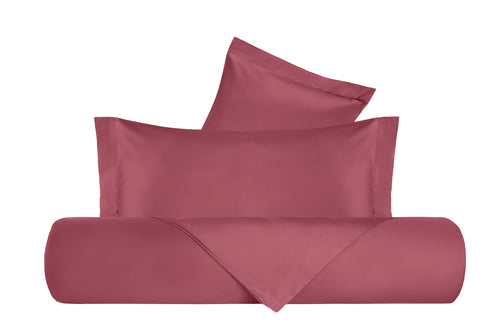 Coppia di federe a 2 volani in Raso di puro cotone Lampone