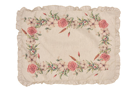 Set di 2 tovagliette americane colazione con decorazione frou frou coppia tovagliette 35 X 50 CM in misto lino stampa floreale fiori morbide resistenti eleganti made in italy ULIVO