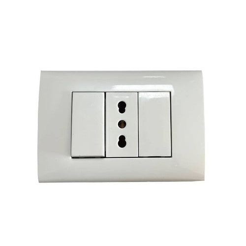 Kit 3 moduli presa bipasso 10-16a, copriforo e interruttore unipolare