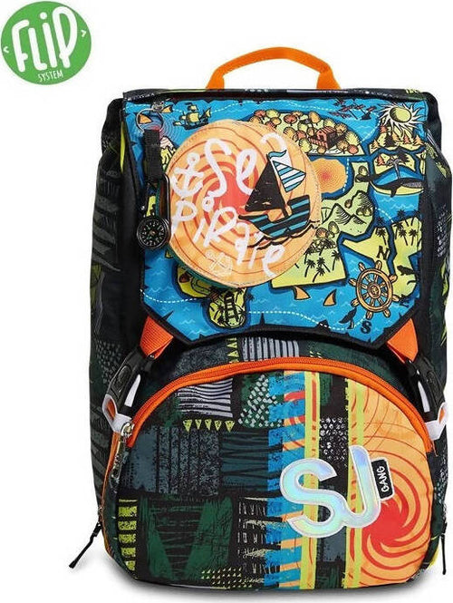Zaino Scuola Sj Advanced Sea Pirate Boy Zaino per La Scuola Fantasia Tasca Frontale Organizzata E Porta Borraccia Seven