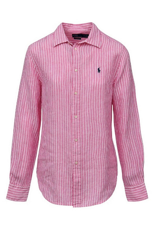 Camicia Ralph Lauren Uomo a righe Black/White Colletto Button Down con Maniche lunghe e Logo Ricamato